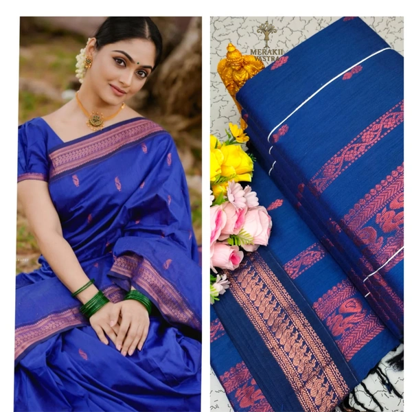 - Traditional Design: Grand jari pallu paired with detailed thread puttas for an opulent, timeless appeal.