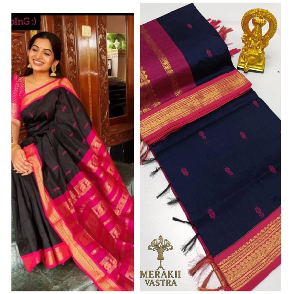 - Traditional Design: Grand jari pallu paired with detailed thread puttas for an opulent, timeless appeal.