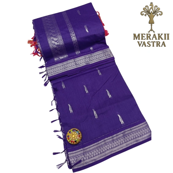Made from 100% original Kalyani cotton, this saree offers a combination of softness, durability, and a luxurious feel. The intricate details, including the grand jari pallu and complementing contrast blouse, add a touch of elegance to your attire. With a generous length of 6.30 meters, this saree ensures a perfect drape, enhancing your overall look.
