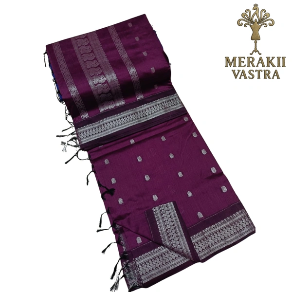 Made from 100% original Kalyani cotton, this saree offers a combination of softness, durability, and a luxurious feel. The intricate details, including the grand jari pallu and complementing contrast blouse, add a touch of elegance to your attire. With a generous length of 6.30 meters, this saree ensures a perfect drape, enhancing your overall look.